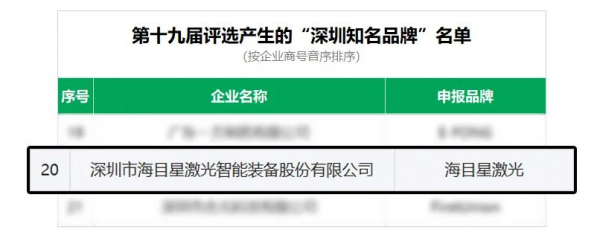 近日,深圳知名品牌評價委員會召開第十九屆“深圳知名品牌”評審會議,公布了72個品牌入選新一屆“深圳知名品牌”。按照《深圳知名品牌評價規(guī)范》團體標準,經(jīng)企業(yè)申報、現(xiàn)場評審、公眾投票、行業(yè)地位評價、品牌價值評估以及深圳知名品牌評委會的嚴格審查,海目星激光憑借專注于激光光學及控制技術、自動化技術,貼心的產(chǎn)品服務,完善的研發(fā)體系,堅持技術創(chuàng)新,榮獲新一屆“深圳知名品牌”榮譽稱號。