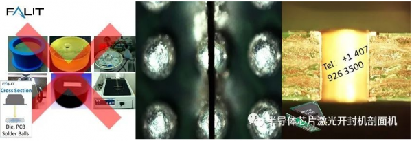 激光剖面芯片,替代傳統(tǒng)費時費力的冷熱制模固定,人工研磨方法。激光可剖面BGA焊球、玻纖PCB板、開封后裸露的晶圓(配合PICO EYE顯微視覺,切縫寬度可控制低至5微米)。