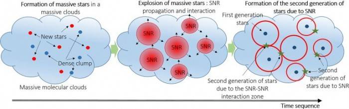 天文觀測缺乏觀察這些過程所需的空間分辨率,而數(shù)值模擬也無法處理云層和超新星遺跡之間復(fù)雜的互動關(guān)系。因此,以這種方式觸發(fā)和形成新的恒星仍然大多籠罩在神秘之中。