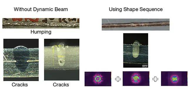 光束形狀上的一個(gè)小的改變通常會(huì)帶來巨大的效果上的改變。盡管如此,直到現(xiàn)在,大多數(shù)的光束形狀的解決方案只能提供有限的選擇和并沒有能力實(shí)現(xiàn)動(dòng)態(tài)的設(shè)計(jì)光學(xué)形狀的能力。光束形狀調(diào)整的能力可以實(shí)現(xiàn)特定的焊縫形狀和顯微組織,主要取決于所需要的結(jié)果。