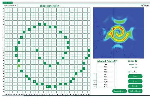 圖5 出現(xiàn)的動(dòng)態(tài)光束調(diào)整是伴隨著軟件的快速發(fā)展使得用戶可以設(shè)計(jì)光學(xué)形狀并進(jìn)行優(yōu)化以滿足特定的焊接應(yīng)用。通過點(diǎn)擊用戶操作界面,例如,用戶可以設(shè)計(jì)出想象的光學(xué)形狀和排列來,非常容易地評估不同形狀以找到特定焊接結(jié)果所需要地最優(yōu)化地光學(xué)形狀來。