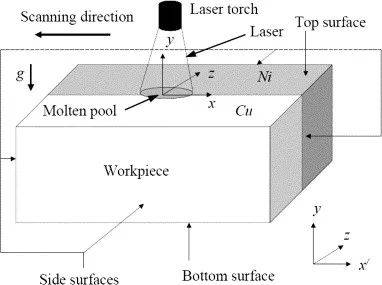 本文建立了一個瞬態(tài)三維模型來模擬不銹鋼-鎳異種熱電偶激光點焊過程中的傳熱傳質(zhì)過程。為了簡化計算,做出以下假設(shè):
