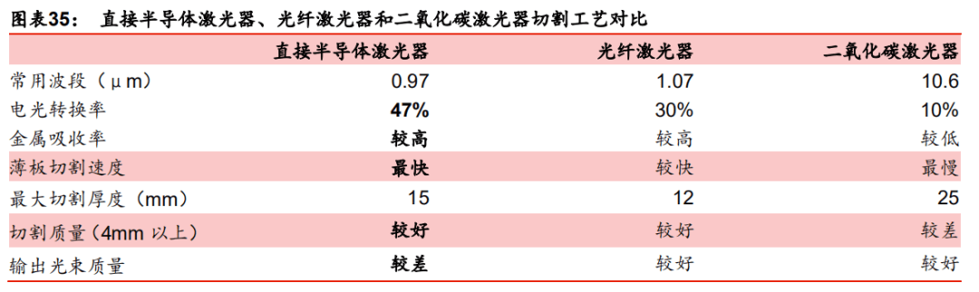 半導(dǎo)體激光器具有加工應(yīng)用潛力,但受限于技術(shù)缺陷存在局限性。研究表明直接半導(dǎo)體激光器具有較強(qiáng)的材料加工應(yīng)用潛力,相比光纖激光器和二氧化碳激光器具有更好的切割速度和切割質(zhì)量。但半導(dǎo)體激光器最大的缺點(diǎn)在于其在高激光功率時(shí)光束質(zhì)量低下,目前工業(yè)半導(dǎo)體激光器局限于少數(shù)幾種加工,諸如電鍍、銅焊和越來越多的高功率焊接,因此在未來數(shù)年,半導(dǎo)體激光器不太可能使整個(gè)材料加工領(lǐng)域發(fā)生革命性變化或取代其它光源。