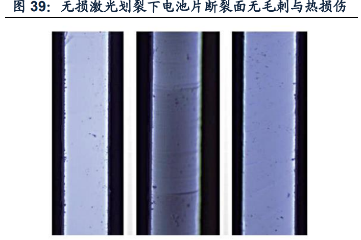 無(wú)損激光劃裂優(yōu)勢(shì)顯著,有望成為行業(yè)新一代主流技術(shù)。無(wú)損激光劃裂技術(shù)具備截 斷面干凈、不存在損傷點(diǎn)、加工產(chǎn)生的硅粉塵數(shù)量少、抗彎強(qiáng)度保持不變等特點(diǎn), 解決了常規(guī)激光劃裂造成的電池片損傷問(wèn)題,能將切片前后電池性能損失降到最小, 助推組件輸出功率提升。對(duì)應(yīng)無(wú)損激光劃裂設(shè)備,帝爾激光、海目星、奧特維等多 家公司已推出成熟產(chǎn)品,隨著半片、疊瓦等高效光伏組件技術(shù)市場(chǎng)份額持續(xù)提升, 相關(guān)設(shè)備有望持續(xù)放量。