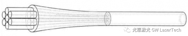 功率合束器的基本結(jié)構(gòu)主要包括三個部分:輸入光纖、熔錐光纖束和輸出光纖。