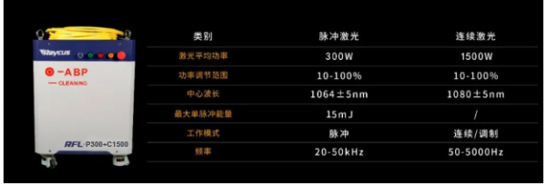目前,激光清洗最常用的應(yīng)用是激光除漆激光除銹。由于RFL-P300+C1500可調(diào)參數(shù)更多,能量密度是單一300W脈沖激光器的3倍之多,可以確定RFL-P300+C1500基本覆蓋了RFL-P300的功能應(yīng)用。它適用范圍更廣,在氧化層、氧化皮處理上效果更好,效率更高。