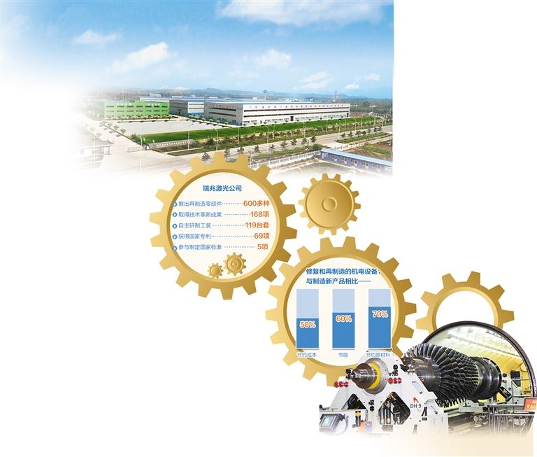 通過持續(xù)研發(fā)激光熔覆材料、激光表面強化等核心技術(shù),挖掘產(chǎn)品全生命周期價值,瑞兆激光公司修復和再制造的機電設(shè)備性能和質(zhì)量均達到甚至超過原產(chǎn)品,與制造新產(chǎn)品相比,實現(xiàn)節(jié)約成本50%、節(jié)能60%、節(jié)約原材料70%。