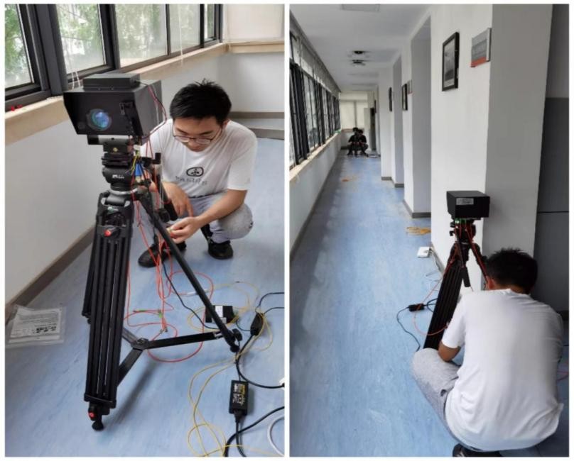 FSO技術(shù)在光纜鋪設(shè)困難的場(chǎng)景下可滿足5G基站機(jī)房與天線間的無線數(shù)據(jù)傳輸、應(yīng)急通信和基站拉遠(yuǎn)的需求應(yīng)用。采用無線激光通信技術(shù)解決設(shè)備間的高速數(shù)據(jù)傳輸問題,擴(kuò)大了5G基站的覆蓋范圍和應(yīng)用領(lǐng)域。本次實(shí)驗(yàn)通信速率為10Gbps,通信距離數(shù)十米,最大通信距離可達(dá)2km。據(jù)悉,采用無線激光通信技術(shù)實(shí)現(xiàn)5G基站的業(yè)務(wù)數(shù)據(jù)傳輸實(shí)驗(yàn)在國(guó)內(nèi)還未見報(bào)道。圖1-2給出了無線激光通信設(shè)備現(xiàn)場(chǎng)調(diào)試場(chǎng)景。圖3為實(shí)驗(yàn)采用的5G基站設(shè)備與室內(nèi)5G天線實(shí)物圖。