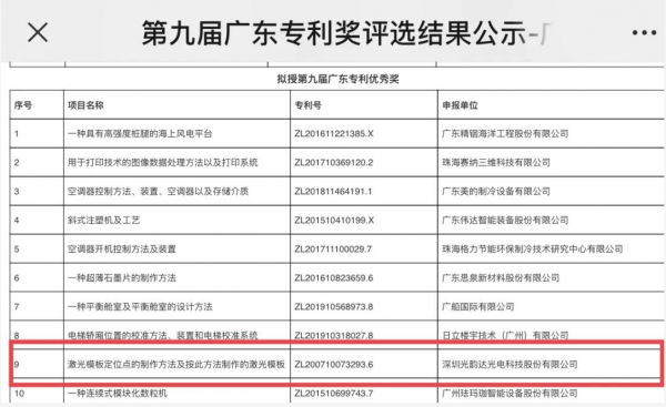 2022年6月17日,廣東省市場監(jiān)督管理局發(fā)布了《廣東專利獎評選結(jié)果公示》。深圳光韻達(dá)光電科技股份有限公司(以下簡稱光韻達(dá))喜獲廣東專利優(yōu)秀獎。