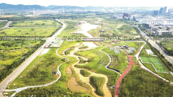 南北走向的光谷中央生態(tài)大走廊,長10.3公里,“水道”居中、“綠道”居西、“空軌”居?xùn)|,浮現(xiàn)出一幅美麗的山水人文畫卷。