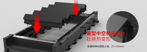在機(jī)床結(jié)構(gòu)上,D-Soar Plus PG 平面坡口光纖激光切割機(jī)參照歐洲標(biāo)準(zhǔn)力學(xué)結(jié)構(gòu)進(jìn)行設(shè)計(jì),采用全新中空分體式的機(jī)床、滿焊底座和特殊設(shè)計(jì)防護(hù)裝置,有效杜絕熱形變;輕量一體化T型切割橋,柔性加減速,減少對(duì)機(jī)械的磨損;液壓式交換工作臺(tái),液壓缸總承重可達(dá)40噸,抗偏載可達(dá)2噸,具有承重強(qiáng)、抗偏載等優(yōu)點(diǎn)。