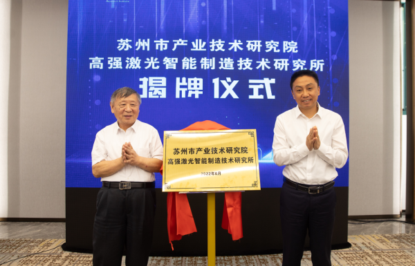 中國(guó)工程院院士范滇元與市產(chǎn)研院副院長(zhǎng)許博為研究所揭牌