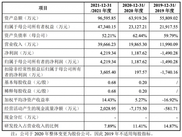 財(cái)務(wù)方面,逸飛激光2019年、2020年和2021年的營收分別為1.20億元、1.99億元和3.97億元;凈利潤分別為-1490.28萬元、1187.62萬元、4219.34萬元;扣非后凈利潤分別為-1740.16萬元、197.57萬元和3605.40萬元。