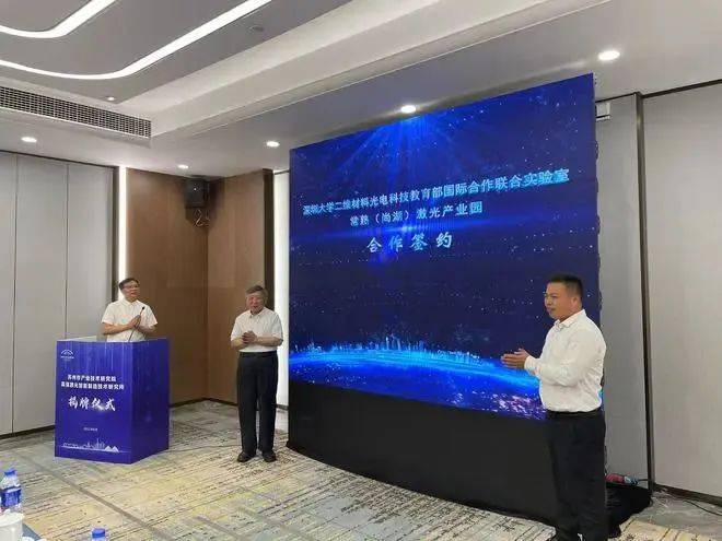 現(xiàn)場,深圳大學(xué)二維材料光電科技教育部國際合作聯(lián)合實驗室與常熟(尚湖)激光產(chǎn)業(yè)園合作簽約;長三角G60科創(chuàng)走廊激光產(chǎn)業(yè)聯(lián)盟與常熟科技局、常熟市科協(xié)、尚湖鎮(zhèn)全面戰(zhàn)略合作協(xié)議簽約。