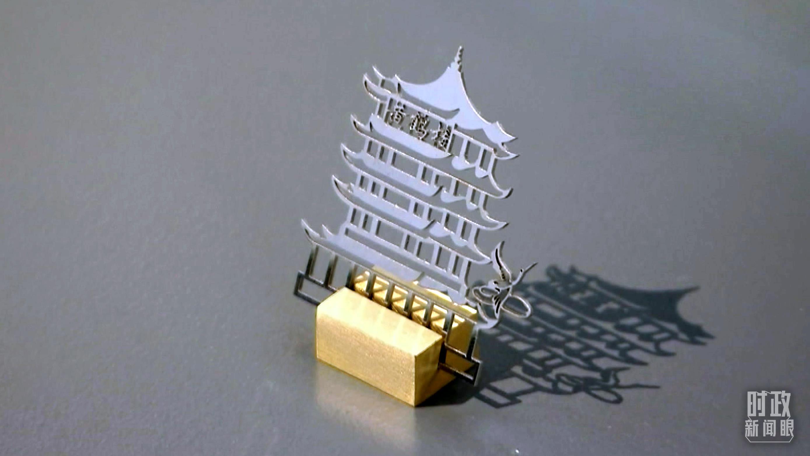 △華工激光制作的“黃鶴樓”模型。(總臺(tái)央視記者段德文拍攝)