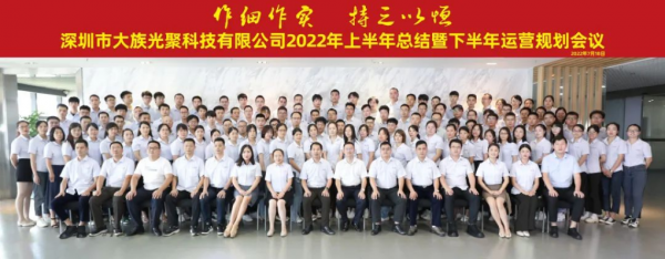 作細(xì)作實(shí),持之以恒 董事長(zhǎng)陳焱致辭,對(duì)大族光聚上半年取得的成績(jī)給予充分肯定,這離不開公司上下的共同努力與付出。陳總特別強(qiáng)調(diào)“國(guó)際視野,技術(shù)領(lǐng)先,質(zhì)量為本”是公司高質(zhì)量發(fā)展的核心運(yùn)營(yíng)戰(zhàn)略?,F(xiàn)階段是大族光聚高速發(fā)展的重要時(shí)期,“創(chuàng)業(yè)難,守成難,知難不難”,下半年要接續(xù)建全完善公司管理體系,堅(jiān)持提高自身創(chuàng)新能力和技術(shù)能力,努力踐行以客戶為中心的服務(wù)理念,以市場(chǎng)為導(dǎo)向的基本原則。陳總寄語大族光聚“欲文明其精神,先自野蠻其體魄”,全體同事要重視過往,勤于學(xué)習(xí),須臾不可懈??;牢記初心,聚勢(shì)謀遠(yuǎn),奮力譜寫新篇章。