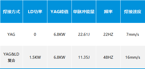 脈沖激光焊焊縫成形美觀、一致性好、良品率高,實(shí)現(xiàn)≥99.5%的一次焊接優(yōu)率。但由于市面YAG脈沖激光器最大功率為600W,受功率限制,最大焊接速度僅為7mm/s。光纖激光焊和連續(xù)復(fù)合激光焊相較效率更高,焊接速度達(dá)到80mm/s,但與脈沖激光焊相比,優(yōu)率低下。
