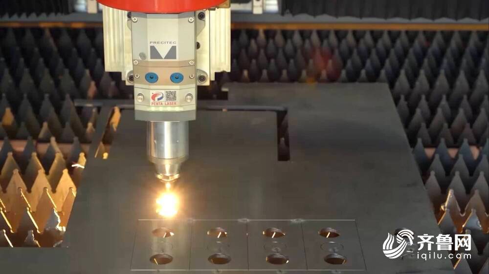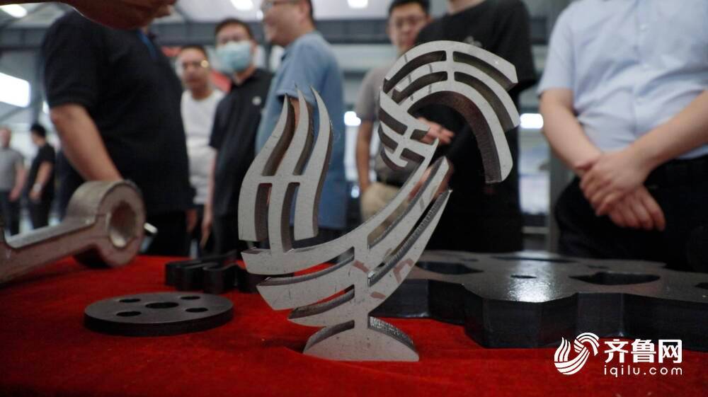 “小到服飾雕花,大到航空航天設(shè)備,從1毫米到100毫米的鋼材,我們的智能化激光切割機(jī)都能切割出來。”在奔騰激光的生產(chǎn)研發(fā)車間,奔騰激光科技(山東)有限公司常務(wù)副總經(jīng)理萬熾雄向記者細(xì)數(shù)著不同型號激光切割機(jī)的功能,并展示出通過激光設(shè)備切割出來的不同成品,其中就包括激光切割而成的山東廣播電視臺臺標(biāo)。他表示,一塊鋼板經(jīng)過調(diào)試機(jī)器、設(shè)定參數(shù)、擺放材料,無論是一個精密的機(jī)械零部件,還是特定造型的標(biāo)志,十幾秒的工夫就能切割出來。
