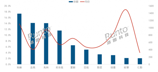數(shù)據(jù)來源:洛圖科技(RUNTO)線上數(shù)據(jù),單位:%,元