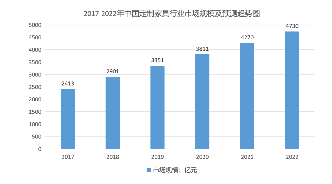 據(jù)中商產(chǎn)業(yè)研究院預(yù)測,2022年中國定制家具行業(yè)市場規(guī)模將達(dá)4730億元,伴隨著市場動態(tài)的變化,以及政策紅利的驅(qū)動,2022年進(jìn)一步承接往年良好態(tài)勢,定制家具行業(yè)仍有一定的增長空間。