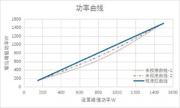 未經(jīng)校準(zhǔn)的機(jī)器往往表現(xiàn)在單臺(tái)機(jī)器均可滿足工藝應(yīng)用,但不同機(jī)器之間工藝參數(shù)不能完全復(fù)制,均需要微調(diào)參數(shù)。QCW 150 Plus增加了功率曲線校準(zhǔn)工藝,實(shí)現(xiàn)單機(jī)以及機(jī)器之間設(shè)定功率與實(shí)際輸出功率的全對(duì)應(yīng)。以下為示意圖: