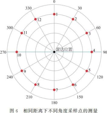 測量系統定位是否準確是由其對所測點 M 到激光雷達的距離即以激光雷達為圓心的半徑 r 和方位角 θ 的測量的準確性共同決定的。為了檢驗測量系統測距和方位角測量的準確性,在一平面上繪制極坐標,對測量系統分別進行測距和測角兩種情況驗證。