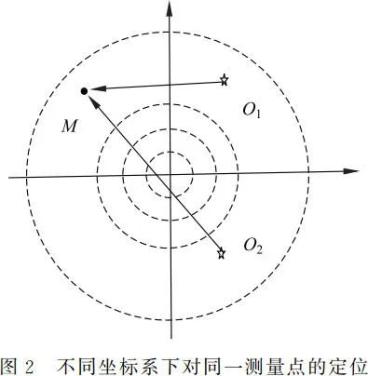 在平面上確定坐標原點建立極坐標系,那么定位平面上任意一點 M 的位置,需要知道 M 的坐標(r,θ),即 M 點到原點的距離以及與坐標軸的方位角,這樣通過得到 M 點相對坐標系原點的位置信息而達到對 M 點的定位。