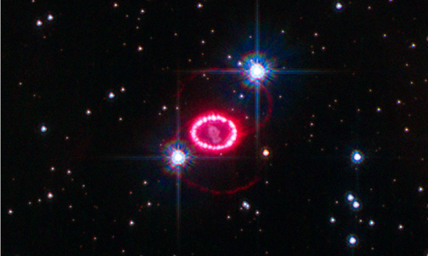 這張來自哈勃太空望遠(yuǎn)鏡的 2010 年 NASA 圖像顯示了超新星 1987A 周圍的整個區(qū)域。