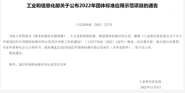 今日,工業(yè)和信息化部公布“2022年團(tuán)體標(biāo)準(zhǔn)應(yīng)用示范項目名單”,中國光學(xué)光電子行業(yè)協(xié)會團(tuán)體標(biāo)準(zhǔn)《顯示器觀看體驗評價》(T/COEMA 001LCD-2021)獲評工業(yè)和信息化部2022年團(tuán)體標(biāo)準(zhǔn)應(yīng)用示范項目。