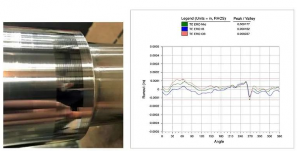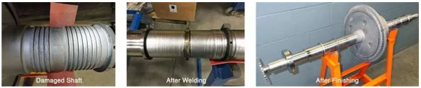 如果沒有可行的修復(fù)工藝,深度約為 0.003 英寸的劃痕會使軸變成廢料。由于需要從軸頸區(qū)域通過軸的聯(lián)接端進(jìn)行焊接,因此傳統(tǒng)的電弧焊接派不上用場。在這種情況下,由于該位置的強(qiáng)度要求,在耦合區(qū)域進(jìn)行焊接是不可行的。相反,激光焊接工藝用于對劃痕進(jìn)行局部修復(fù),無需在耦合區(qū)域進(jìn)行焊接,同時(shí)節(jié)省了大量加工時(shí)間。修復(fù)區(qū)域的最終研磨不需要超出原始圖紙公差的額外切削量。2.覆蓋修復(fù)