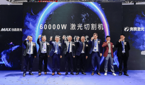 隨著中國光學(xué)學(xué)會激光加工專委會主任張慶茂、奔騰激光集團董事長馬丁諾、奔騰激光集團總裁吳讓大、奔騰激光集團輪值CEO徐俠、創(chuàng)鑫激光董事長蔣峰、創(chuàng)鑫激光銷售總監(jiān)武華鵬等一眾領(lǐng)導(dǎo)上臺啟動按鈕,60000W激光切割機正式發(fā)布。