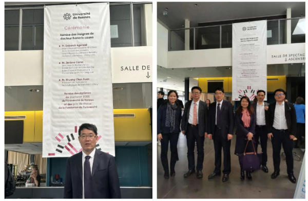 當(dāng)?shù)貢r間4月4日下午,法國雷恩大學(xué)校長David Allis教授為深圳技術(shù)大學(xué)校長阮雙琛教授舉行榮譽博士授予儀式,授予阮雙琛教授雷恩大學(xué)材料與光學(xué)領(lǐng)域榮譽博士稱號。這是法國大學(xué)給予國外學(xué)者的最高榮譽,深圳技術(shù)大學(xué)代表團(tuán)與雷恩大學(xué)師生共同見證了這一難忘時刻。