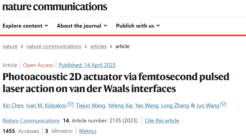 中國科學(xué)院科學(xué)家利用飛秒脈沖激光作用于范德華界面的二維納米片驅(qū)動器 , 相關(guān)研究以 “Photoacoustic 2D actuator via femtosecond pulsed laser action on van der Waals interfaces” 為題發(fā)表在《 Nature Communications 》上。