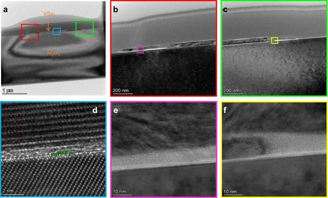 圖3:藍(lán)寶石襯底上VSe2納米片的透射電鏡橫截面圖像。