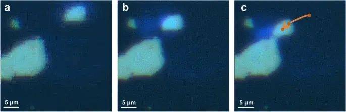 實(shí)現(xiàn)了二維納米片在非流體環(huán)境下的全光驅(qū)動,對其實(shí)際應(yīng)用具有啟發(fā)意義。例如,如圖6所示,分離的納米片逐漸向較大的納米片移動,直到它們成功地拼接在一起。因此,光聲操控方法使研究人員能夠?qū)⒍S材料組裝在一起并構(gòu)建它們的結(jié)構(gòu),這是一種很有潛力的制造橫向光子和光電子器件的方法。