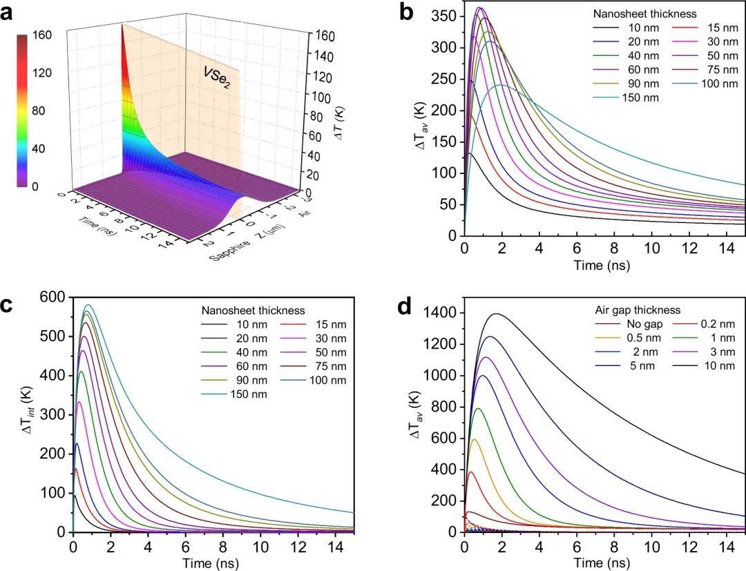 圖4:激光脈沖后VSe2納米片溫度增量時(shí)空分布模型。
