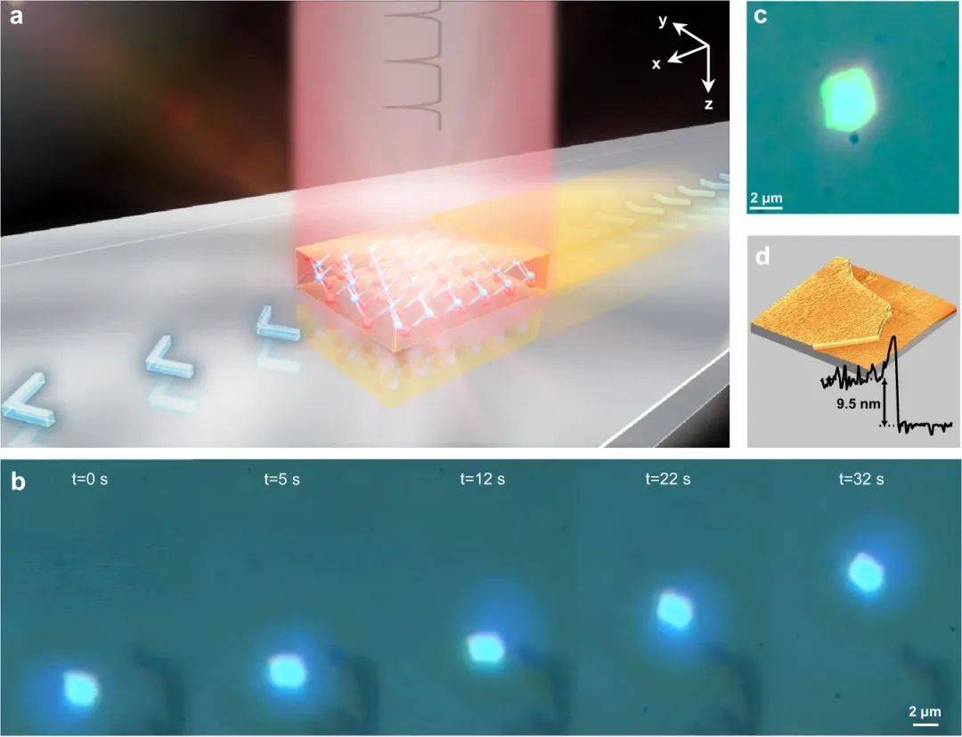 圖1:藍(lán)寶石襯底上二維材料納米片的光驅(qū)動。