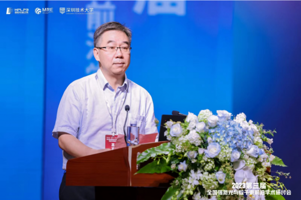 開幕式結(jié)束后,深圳技術(shù)大學(xué)工程物理學(xué)院周滄濤院長以“強(qiáng)激光驅(qū)動(dòng)新型粒子源與輻射源研究”為題的大會(huì)特邀報(bào)告拉開了本次學(xué)術(shù)盛宴的序幕。接下來,中國工程物理研究院流體物理研究所石金水做了“小型醫(yī)用回旋加速器產(chǎn)業(yè)化發(fā)展”的報(bào)告,中國久遠(yuǎn)高新技術(shù)裝備有限公司楊銳做了“高能激光——摧毀無人機(jī)的利器”的報(bào)告,國防科技大學(xué)王小林做了“LD泵浦新型高功率光纖激光器”的報(bào)告,中國工程物理研究院應(yīng)用電子學(xué)研究所吳岱做了“電子直線加速器前沿應(yīng)用”的報(bào)告,北京大學(xué)喬賓做了“激光驅(qū)動(dòng)的新型短脈沖中子源研究進(jìn)展”的報(bào)告,中國工程物理研究院激光聚變研究中心趙宗清做了“激光聚變熱斑特性研究進(jìn)展與挑戰(zhàn)”的報(bào)告,東華理工大學(xué)湯彬做了“加速器中子源科學(xué)裝置及其應(yīng)用展望”的報(bào)告,奔騰激光(浙江)股份有限公司吳讓大做了“高功率激光切割與焊接裝備與應(yīng)用”的報(bào)告,北京應(yīng)用物理與計(jì)算數(shù)學(xué)研究所蔡洪波做了“慣性約束聚變中的應(yīng)用基礎(chǔ)問題”的報(bào)告,西北核技術(shù)研究所楊鵬翎做了“高能激光多域測(cè)試與評(píng)估技術(shù)”的報(bào)告。11個(gè)大會(huì)特邀報(bào)告精彩紛呈,從不角度分享了我國強(qiáng)激光與粒子束領(lǐng)域的最新進(jìn)展與未來趨勢(shì)。
