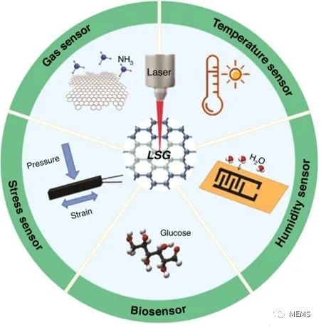 激光直寫石墨烯(LSG)用于應(yīng)力、生物、氣體、溫度和濕度傳感器