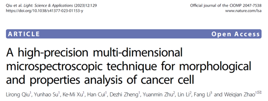北京理工大學(xué)光電學(xué)院趙維謙教授課題組提出了具有高穩(wěn)定、高分辨、抗散射的激光差動(dòng)共焦拉曼-布里淵圖譜成像新原理,研制成功了相應(yīng)的儀器,實(shí)現(xiàn)了樣品三維形貌、力學(xué)性能和化學(xué)組分的多維信息檢測(cè),并與北京大學(xué)航天臨床醫(yī)學(xué)院(航天中心醫(yī)院)合作,利用該研制儀器對(duì)腫瘤組織進(jìn)行了有效表征分析。相關(guān)工作發(fā)表在Light: Science & Applications上 (Light: Science & Applications,12, 129 (2023))。該研究工作以北京理工大學(xué)為第一通訊單位,趙維謙教授為通訊作者,邱麗榮教授為論文的第一作者。