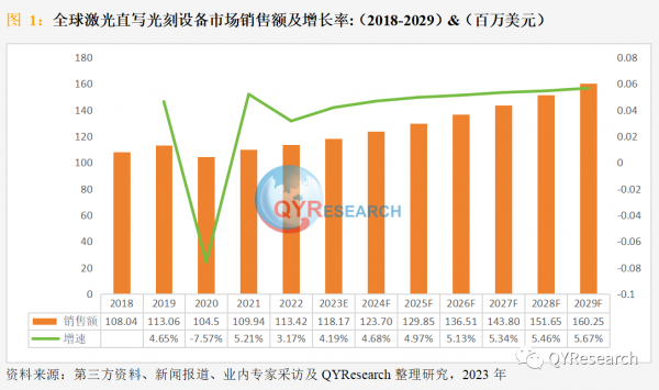 2022年全球激光直寫光刻設(shè)備市場規(guī)模達到了113.42百萬美元,預(yù)計2029年將達到160.25百萬美元,2023-2029年復(fù)合增長率(CAGR)為5.21%。