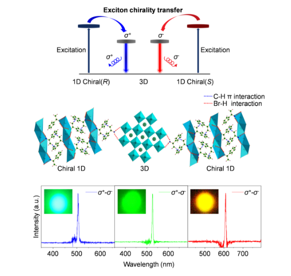 圖. 激子手性傳遞在1D鈣鈦礦錨定3D鈣鈦礦結構中實現(xiàn)自驅動自旋極化激光