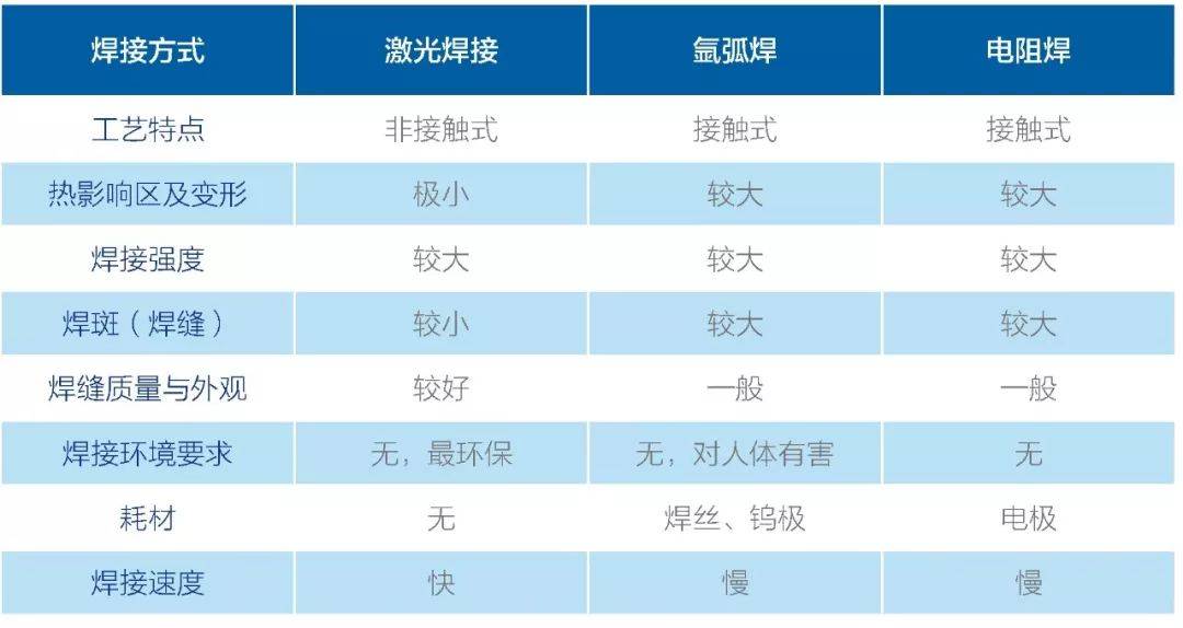 激光焊接與傳統(tǒng)焊接工藝主要特點對比: