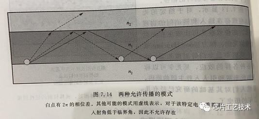 對(duì)于TE和TM模式,只有某些離散的角度可以成為導(dǎo)引模式,從而沿波導(dǎo)傳播。就像標(biāo)準(zhǔn)具的中的光,必須經(jīng)過(guò)相長(zhǎng)干涉來(lái)使標(biāo)準(zhǔn)具支持某個(gè)特定波長(zhǎng)一樣,波導(dǎo)中的光也必須經(jīng)過(guò)相長(zhǎng)干涉,讓特定“模式”得以存在,對(duì)應(yīng)于特定的入射角。
