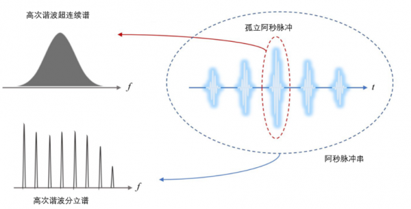 圖:高次諧波、阿秒脈沖串與阿秒脈沖之間的關(guān)系