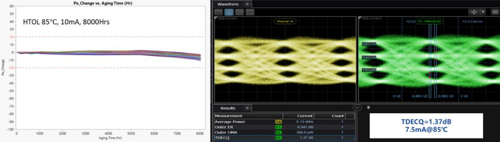 華辰芯光 50G PAM4 VCSEL 光芯片產(chǎn)品可靠性和模塊眼圖特性