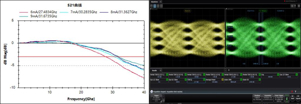 華辰芯光單波 100G PAM4 VCSEL 光芯片產(chǎn)品帶寬特性及模塊眼圖特性