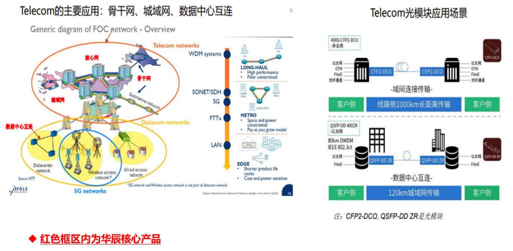 華辰芯光的光通信芯片可以應(yīng)用于核心網(wǎng)、骨干網(wǎng)、城域網(wǎng)、數(shù)據(jù)中心互聯(lián)等領(lǐng)域。