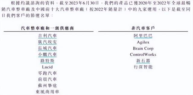 這一先發(fā)優(yōu)勢也延續(xù)至今,招股書顯示,截至 2023 年 3 月 31 日:速騰聚創(chuàng)已成功取得 21 家汽車整車廠及一級供應商的 52 款車型的前裝量產(chǎn)定點預期訂單,位居全球第一。根據(jù)灼識咨詢的資料,截至同日,速騰聚創(chuàng)的激光雷達產(chǎn)品已被全球最暢銷汽車整車廠(按 2020 年至 2022 年銷量計)及按中國前十大汽車整車廠(按 2022 年銷量計)中的九家選用,包括中國最大的汽車整車廠及全球最大的新能源汽車整車廠。其中,主要客戶包括吉利汽車、廣汽埃安、長城汽車、小鵬汽車、路特斯、Lucid、零跑汽車等。