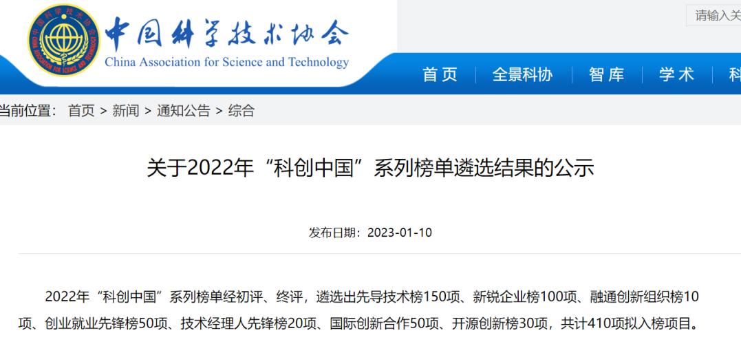 入選2022年“科創(chuàng)中國”先導(dǎo)技術(shù)榜榜單